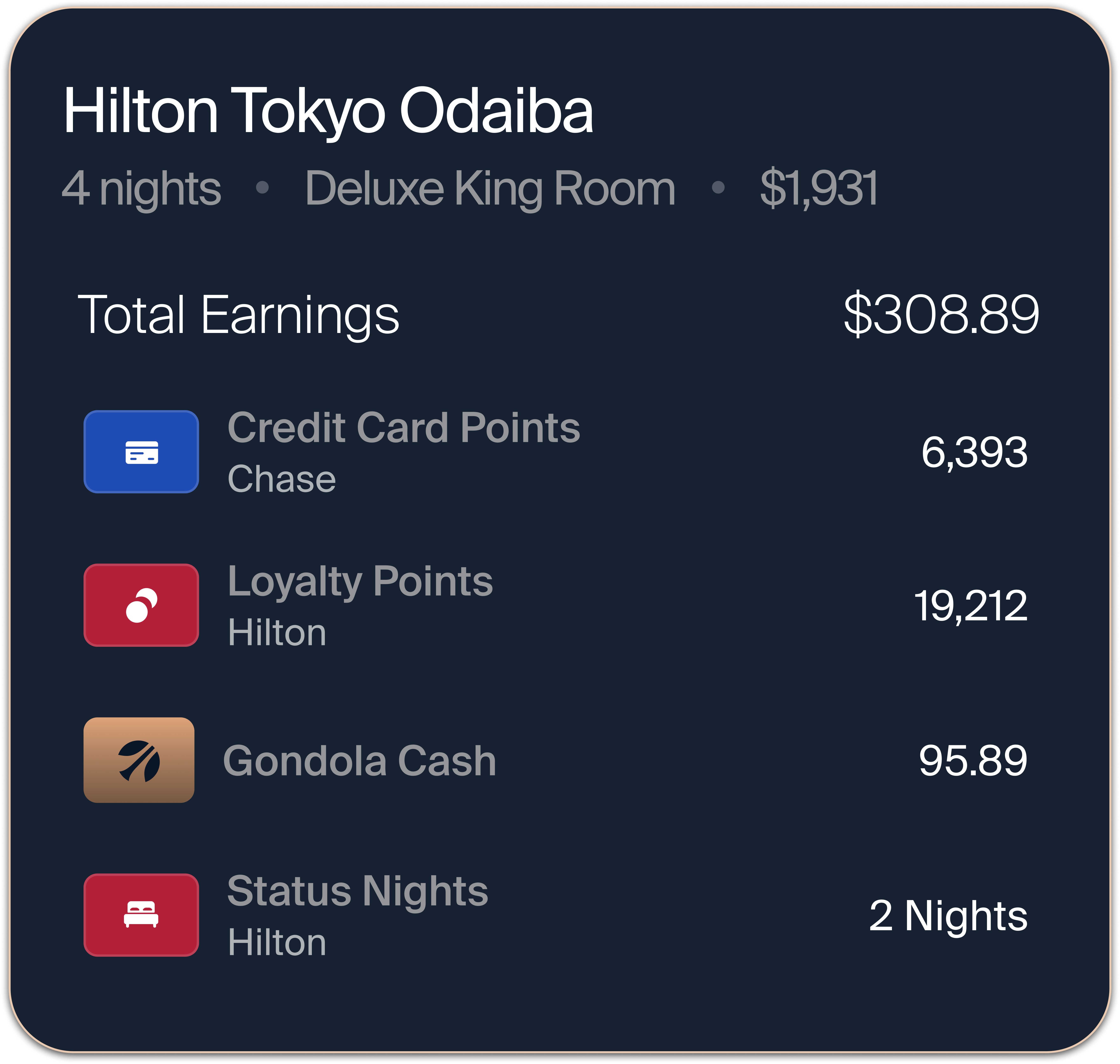 2. Book with Gondola: securely book your booking on Gondola, and we’ll process it directly with the hotel. You'll earn all your direct points and perks, plus 3-7% Gondola Cash back.